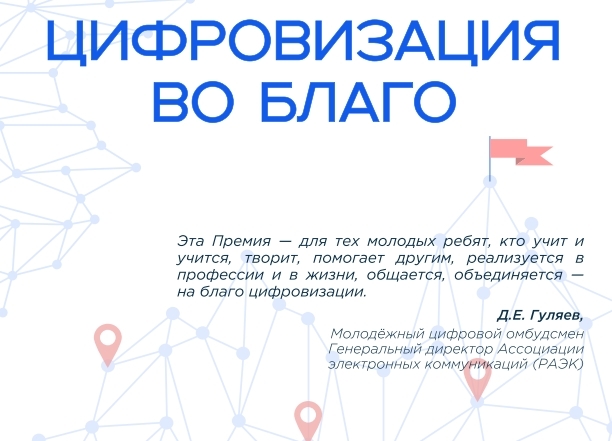 Премия «Цифровизация во благо» — это ежегодное мероприятие, направленное на выявление и поддержку молодых специалистов в сфере информационных технологий и цифровой среды.