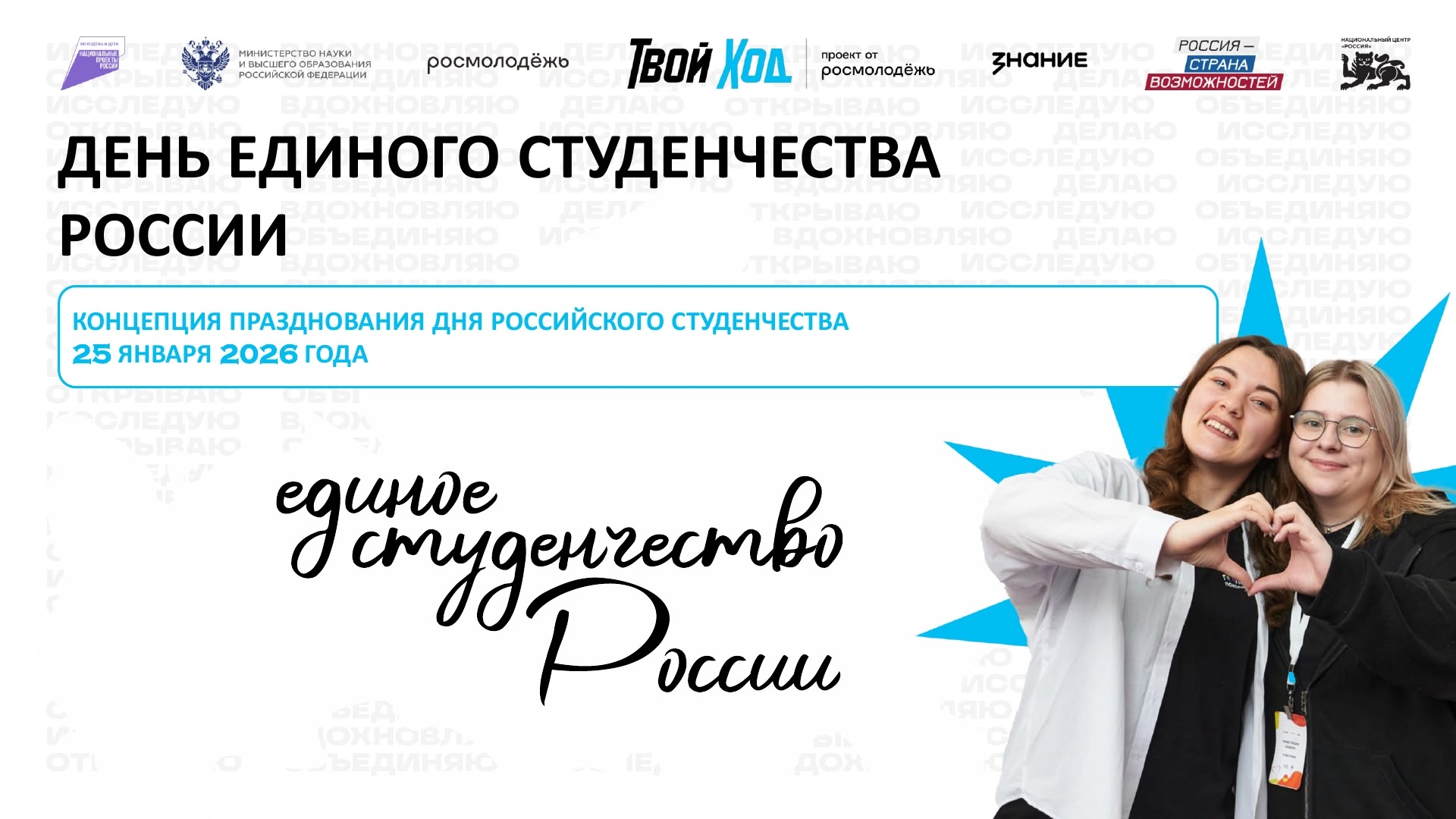 Всероссийский студенческий проект «Твой Ход» начинает шестой сезон. Старт приурочен к празднованию Дня российского студенчества 25 января 2026 года в рамках масштабной акции «День единого студенчества России».